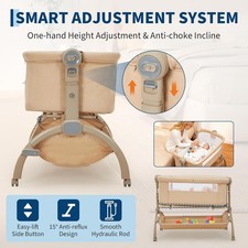 Adjustable Bedside Crib W/ Breathable Mesh, Wheels & Incline Setting for Newborn