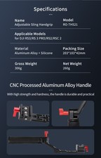 Applicable Models: for DJI RS3/RS 3 PRO/RS2/RSC 2. 1 Gimbaled Handheld Stabiliser. Adjustable Angles. CNC Processed Aluminum Alloy Handle. With high strength and hardness, the handle is durable and practical.