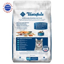 Blue Buffalo Tastefuls Natural Dry Food for Adult Indoor Cats, Salmon & Brown Rice Recipe, 15-lb. Contains: One (1) 15-lb bag of BLUE Tastefuls Indoor Adult Dry Cat Food, Salmon Recipe. REAL SALMON FIRST: This Blue Buffalo cat food is made in the USA with real, high-quality salmon as the #1 ingredient.