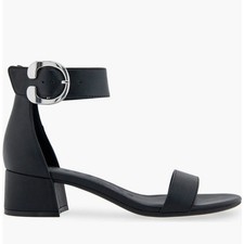 Elegant black heels with ankle strap. Sleek design for versatile wear. Comfortable and stylish. Gleaming hardware adds instant polish to an OrthoLite® foam-cushioned sandal grounded by a diamond-flex sole.