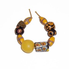 The lot consists of 9 Venetian beads and one Czech Trade Bead. The size of the round beads range from 15mm (center yellow) to 10mm. This is a group 10 mixed Antique Trade Beads.