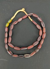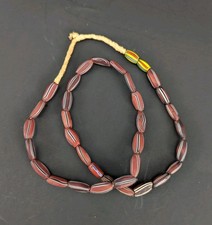 African Trade Watermelon Bead Strand - - Brown w/ White and Black Stripes -