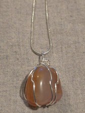 This Agate Pendant on a Sterling Silver Necklace is a handcrafted piece of jewelry featuring a natural Agate stone in its natural tumbled shape. The pendant is wire-wrapped in silver plated wire and hangs from a 24-inch sterling silver chain. The stone is not enhanced and comes from The Good Witch Healing Gemstones and Crystals brand, sourced from the United States. This unisex necklace is a unique piece of artisan jewelry that showcases the beauty of natural gemstones and the artistry of handcrafted design.