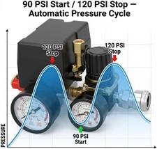 Air Compressor Pressure Switch for Pneumatic Tools, 90–120PSI Adjustable Contr