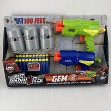 The Air Warriors Gem 2 Pack in Blue & Green by Buzz Bee Toys is a set of two dart guns designed for outdoor play. Released in 2020, these guns are part of the Buzz Bee product line and are recommended for children aged 6 and up. Made in China, this toy set caters to a wide range of age levels, from 8-11 years old to adults aged 17 years and up, providing hours of fun and excitement for kids and adults alike.