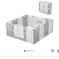 Albott Foldable Portable Playpen 14 Panels Grey Safety Gate Game Panel