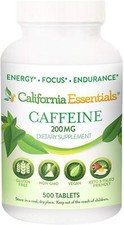 ⭐California Essentials Caffeine Tablets – 200mg Energy & Focus Support. Formulated with addedcalcium, our caffeine tablets help replenish minerals that may be reduced during caffeine consumption. 200mg Pure Caffeine Per Tablet – Strong, consistent energy support.