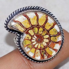 Ammonite Dichroic Glass 925 Silver Plated Ring US 9.5 Most Beautiful MJ