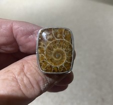 Beautiful Ammonite Ring Sterling silver Handmade Stone 3/4" by 1" Size 9 We ship USA only! (No Alaska,Hawaii or Puerto Rico)