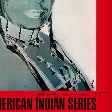 "The American Indian Series" is a vintage poster by Andy Warhol (1928-1987) from the Ace Gallery, Los Angeles, CA. This piece is hand signed and dated (1985) by Warhol. This piece comes custom framed. Includes Letter of Authenticity. Measures approx. 35.5" x 51" (frame), 29.5" x 47.5" (image). Due to the age of the piece there may be some waviness and/or minor wrinkles on the paper.
