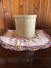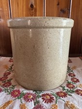 This antique American stoneware crock is a small piece of pottery (6x6) with a Americana style, dating back to the late 19th century. It is a collectible item that has not been signed and is original in its creation. Perfect for those interested in primitives and antiques, this crock holds historical significance and adds a unique touch to any collection.