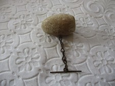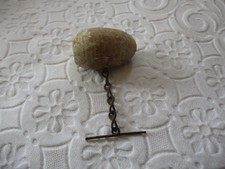 ANTIQUE AMERICANA FOLK ART OLD WOOD ORIGINAL WHITE PAINTED CHICKEN EGG w CHAIN