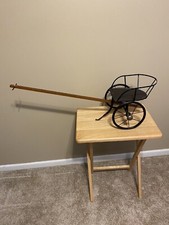 Leather seat, wood handle, metal wheels and frame 32 x 10 x 12 inch Great condition