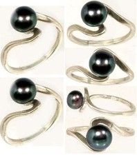 Antique Black Ocean Pearl Gemstone in Sterling Silver Ring