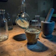 2 " Antique Brass Apothecary Nested Scale Weights. A beautiful and authentic antique brass apothecary weight set featuring graduated nesting cup weights housed in the original lidded brass container.