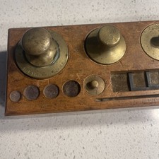 This Antique Brass Scale Weights & Wooden Box (Germany) by Chicago Scale Company is a set of vintage scale weights made of brass, designed for use with a balance scale. These weights are a rare and collectible piece of history, showcasing the craftsmanship and quality of the Chicago Scale Company, in business from 1863 -1914. The set includes a variety of weights in different sizes (1 kg, 500 gm, 200 gm x 2, 100 gm, 50 gm, 20 gm and 10 gm to be used for precise measurements in mercantile, trades, and factories. The brass material and antique design add to the allure and functionality of this unique product. Please note: this not a complete set.