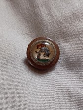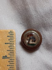 Antique Bucking Bronco Glass Top Composition Button. The shank has rust. The metal around the glass top has green corrosion. The button measures about 3/4" in diameter. It is from an estate. Thank you for your interest and please message me any questions you may have.