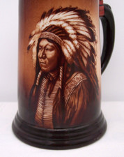 Antique CAC Lenox Beer Stein Indian Chief Sterling Silver / Copper Lid