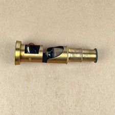 A beautifully madeantique compact brass microscope, best described as asimple or field microscope, dating to thelate 19th to early 20th century. The optical assembly remains intact. The microscope focuses correctly and produces a clear image when used.