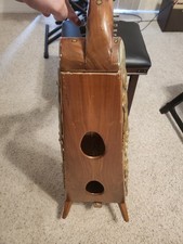 26 STRING ANTIQUE LEVER HARP, 34 INCH HIGH AND 12 IN WIDE, CIRCA 1930'S. ORNATE, HAND PAINTED HAROP WITH SOLID ROSEWOOD, TO BE USED FOR DECORATIO ONLY; IT HAS A BEAUTIFUL INLAID FILIGREE IMAGES ON BOTH SIDES OF THE SOUND BOARD OF AN ANCIENT GREEK WOMAN.