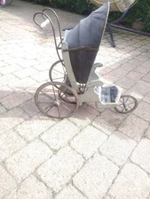 The antique doll carriage buggy is a charming piece made of wood in a gray color, originating from Denmark. This collectible item is perfect for adding a touch of nostalgia to any baby nursery or doll collection. With its sturdy construction and vintage appeal, this doll carriage buggy is sure to be a unique and cherished addition to any home.