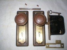 Antique Craftsman Era Working Door Hardware. Locks Work Right or Left. All you have to do normally is open the lock and turn over the striker. Lock face is 5 9/16" x 7/8" x 1/16" thick. Black box is 3 7/8" x 3 1/8" tall x 5/8" thick.