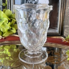 Beautiful antique pressed glass spooner featuring a bold honeycomb (diamond panel) pattern with deeply molded facets and a softly scalloped rim. The form is a classic pedestal spooner / celery or utensil holder, designed for table service and display.