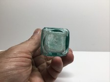 This is a aqua colored bottle that stands 4 1/8 inches tall. It is a dug bottle with very light ground patina. It is clean with no chips or cracks. Please take a moment and browse my store. We are happy to combine shipping on multiple items. Thank you for your time and consideration your business is appreciated.