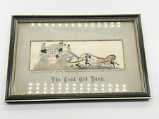 ANTIQUE FRAMED SILK PICTURE THE GOOD OLD DAYS STEVENS STEVENGRAPH
