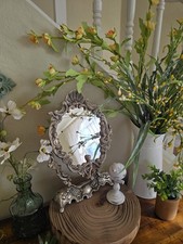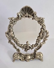 Antique French Swing Mirror Silver Cherub Vanity Mirror Ornate Scroll Work