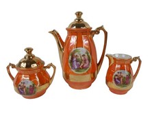 Antique JB&W NY Germany Espresso Demitasse Set Orange Cup Saucer Pot Cream Sugar