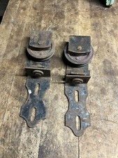 Antique Old Primitive Cast Iron Barn Door Rollers Pulleys Hangers Pair Set USA