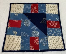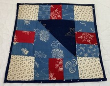 Antique Patchwork Quilt Table Topper, Triangles, Rectangles, Early Calicos, Blue