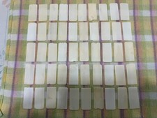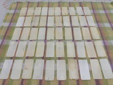 Lot of 50 heads from the pre-1900s. Keys may have yellowing/staining, scratches, chips, cracks and wear from use. Keys from different pianos can differ in color, grain pattern and thickness. Lots can vary from a near perfect set to all keys having some form of deficiency, look carefully. The keys shown are what is shipped. Keys may be sanded to whiten and remove most discoloration. Most lots will come from the same piano, but lots from multiple pianos is possible. Used for replacements, crafts, jewelry, inlay and scrimshaw. I will combine shipping with multiple purchases. L6