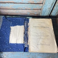 ANTIQUE PRIMITIVE BLUE CALICO COVERED SCHOOL BOOK ORIGINAL OLDE READER AAFA