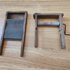 Primitive/Antique Salesman Sample Washboard & Wringer. Very fun unique pieces. These are as found, as shown in pictures and are a great addition to any collection.