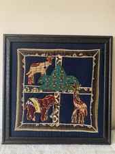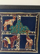 Antique Rare African Art Embroidered Fabric Wall Animals Handmade Custom Framed