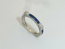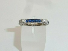 Antique Retro Circa 1880's Art Deco Diamond & Sapphire Wedding Band Ring 925