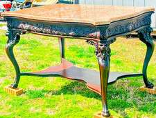 Antique RJ HORNER Figural Carved Mahogany Library Table Marble Top Partners Desk