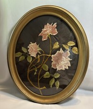 Antique Rose Hand Embroidered Needlepoint Framed Art Oval Frame 23x19