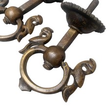 A beautifulpair of old solid brass door knockers, featuring an elegant handcrafteddouble bird motif design. Design: Handcrafted Double Bird Motif. Material: Solid Brass. ✔ Authentic old brass hardware.