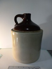 This antique stoneware crock is a 2 gallon + size, measuring 10 1/2 inches in height. Created between 1900-1949 in the US-Midwest, it features a brown and beige two-tone color with a naive and primitive style. Unmarked as to maker, this original stoneware pottery piece embodies the charm and craftsmanship of a bygone era, perfect for collectors of primitive antiques.
