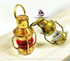 Antique Style Brass Maritime Lantern – Anchor Design Oil Lamp – Nautical Décor