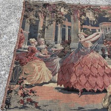Antique Tapestry Victorian Dancing Romantic Scene Made In Belgium