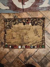 A very unique piece of art. Tapestry and buttons are old and dusty. Sold in, as is, as found antique condition.