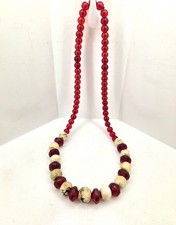 Antique Trade Bead Necklace. 26" length comprised of round Naga conch shell cores and Bohemian red vaseline bicone centers tapering into red vaseline rounds. Strung on waxed polyester cord. A beautiful piece of history to wear or collect.