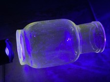 Antique UV GREEN TINT Not Embossed Mustard Jar Hand Tooled 1.25” Lip Opening