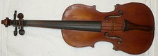 Condition: Violin is old, dusty, and has lost most of its lustre--needs to be cleaned, dusted, and polished. Two small splits in the wood on front towards bottom (see photo). Doing that is against U.S. and International laws.