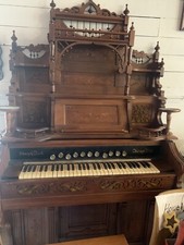 Antique Walnut Pump Organ with Pedals Pat. 1884 and Stool. Antique pedal Pump organ- Chicago USA “Story & Clark” Recently restored for $4500