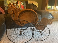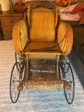 Antique Wicker Baby Stroller With Original Wheels